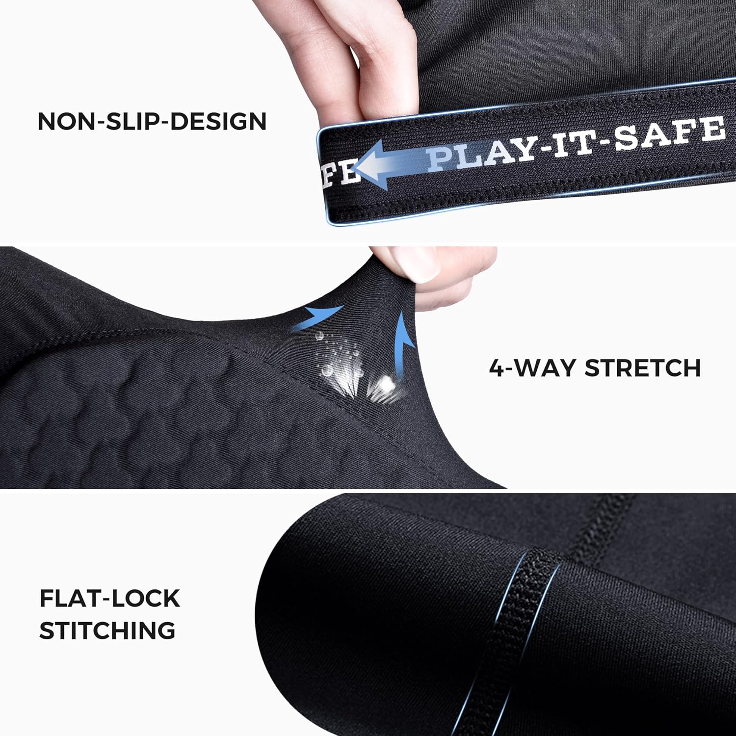The compression fabric we use is a blend of spandex, nylon, and polyester in a specific ratio developed by Legendfit. It's sewn using the strongest 4-needle 6-thread sewing process, resulting in a fabric that is moisture-wicking, breathable, quick-drying, and highly stretchable.
