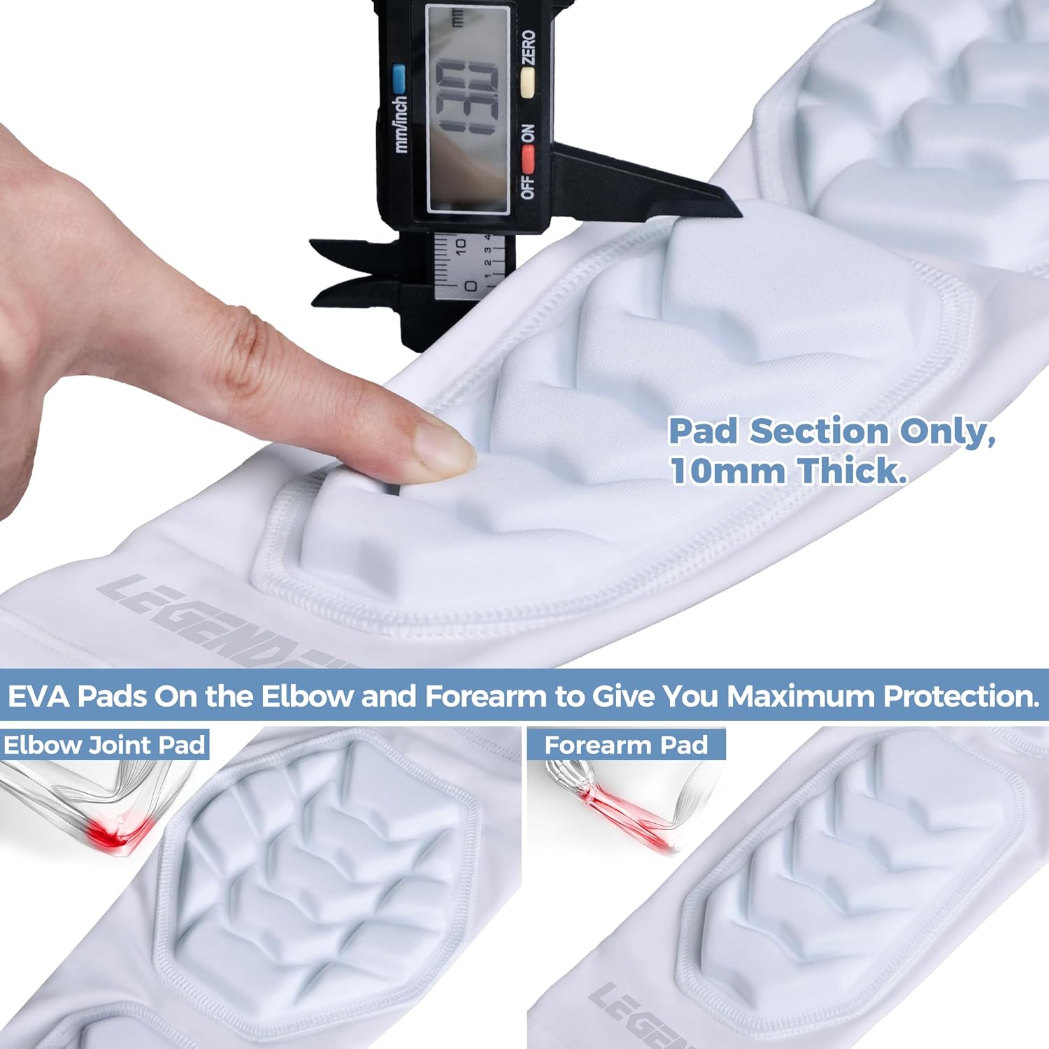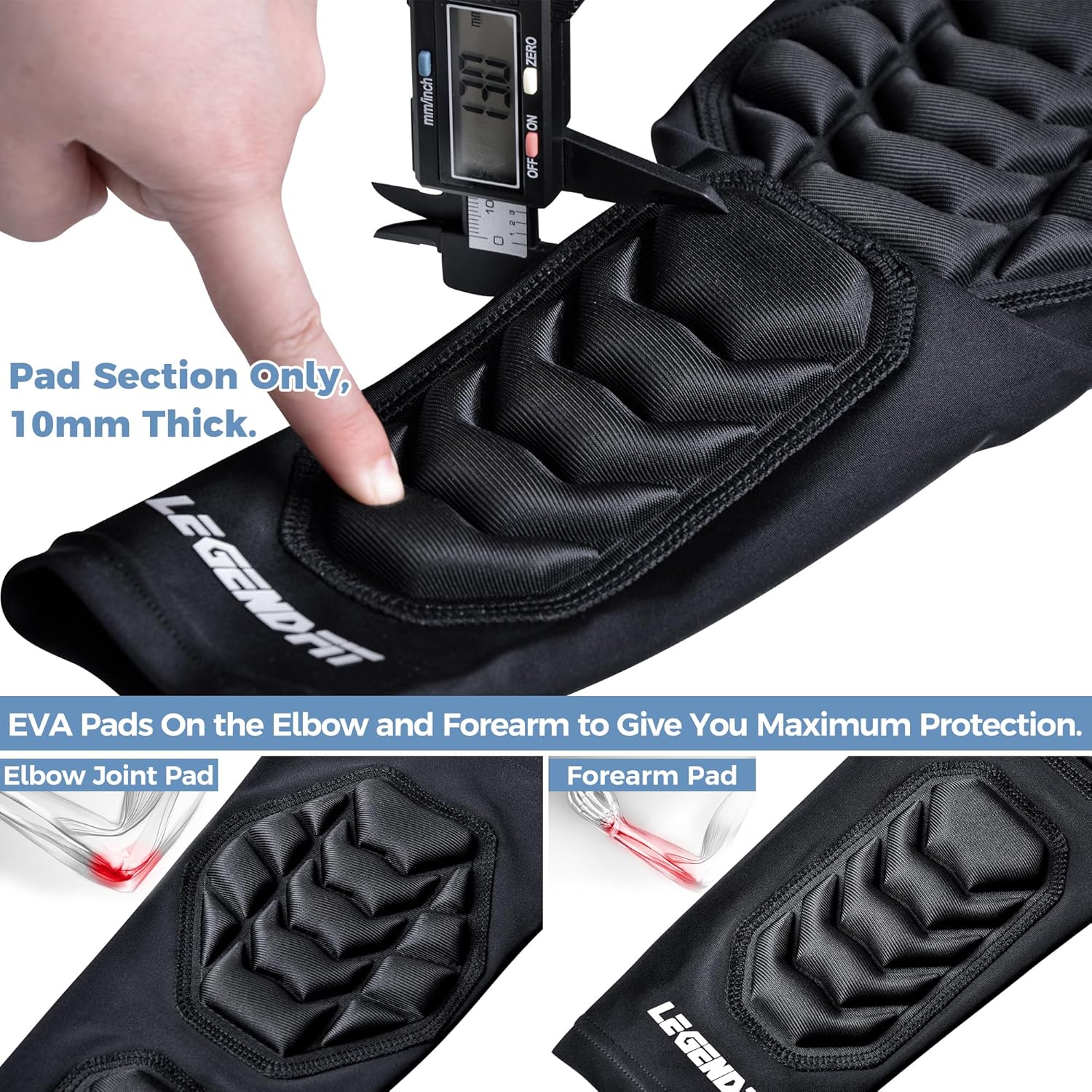 【Maximum Protection】- LEGENDFIT arm sleeves feature durable and firm EVA pads on both elbow and forearm areas to shield arms from injuries during contact sports, or to help joint recovery. This product is suitable for boys, girls, men and women from youth to adult. Please choose the appropriate size according to the range provided by the size chart.